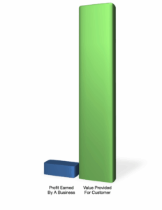 However, the value margin for most customers—meaning the difference between how much it costs to buy a product from a business versus how much it costs to make the product by oneself from scratch—is usually enormous. Usually it would cost a person hundreds, thousands, or even millions times more to make a product than to buy it from a business.